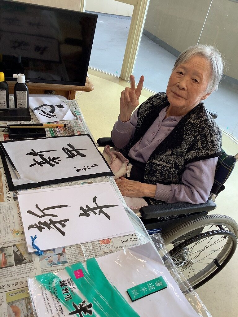 新しい年を迎え、当施設では初詣、書初め、新年会などの新年行事を行いました。